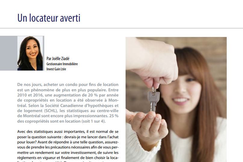 1 propriétaire sur 4 loue son condo au centre-ville. Que ce soit des locations temporaires de Airbnb ou des locations de longue durée, l’article « Un locateur averti » ci-dessous vous donnera plusieurs mise-en garde afin de pouvoir faire le choix le plus profitable pour vous. Vous aurez également quelques trucs sur comment choisir son condo ainsi que ses locateurs.